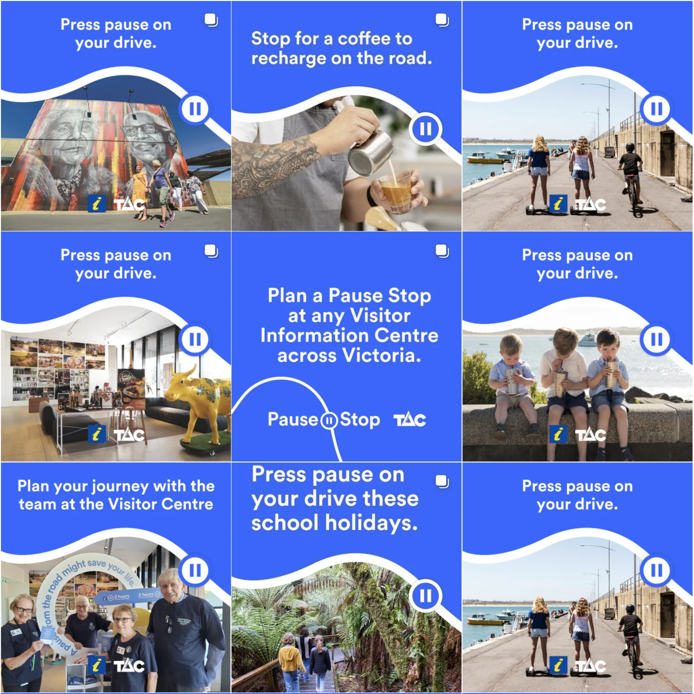 Social media tile for "press pause on your drive these school holidays"